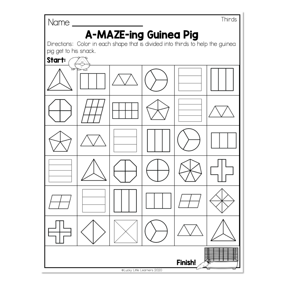 2nd Grade Math Worksheets Geometry Thirds A MAZE ing Guinea