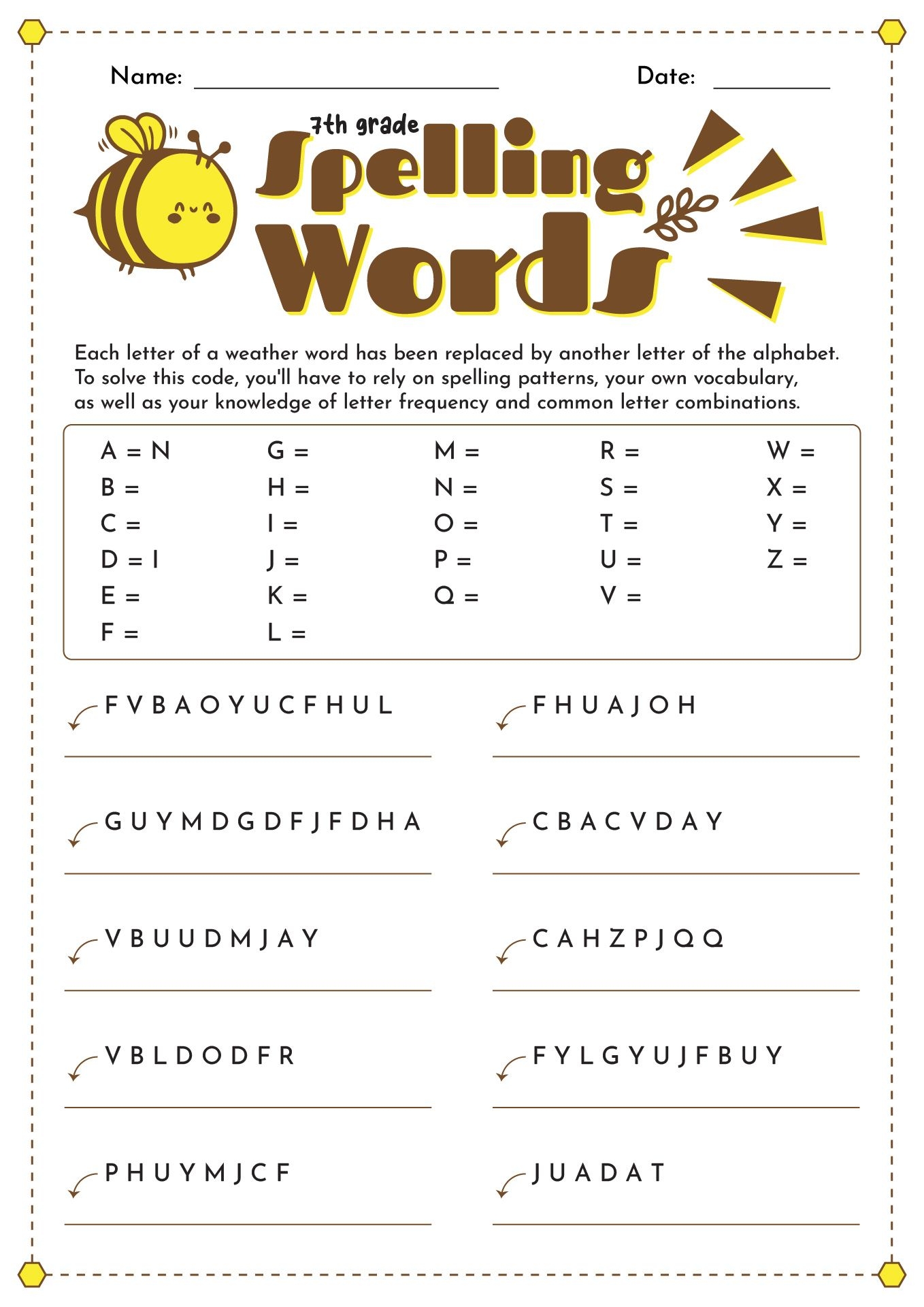 With our free printable spelling worksheets, you can turn study sessions into exciting challenges that will keep your 7th grader engaged and motivated to learn. Say goodbye to boring drills and hello to interactive learning!