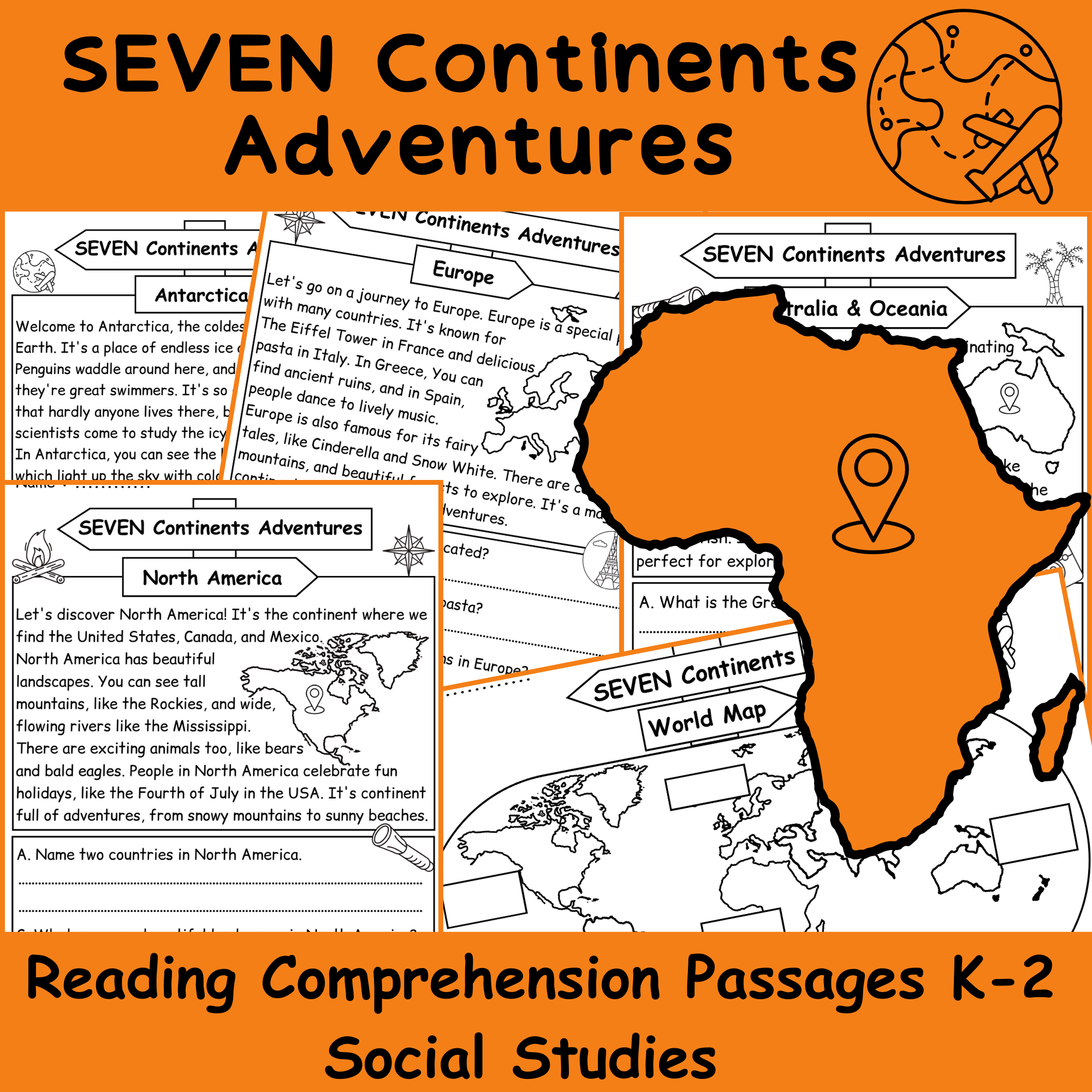 7 Continents Reading Comprehension Passages K 2 Social Studies