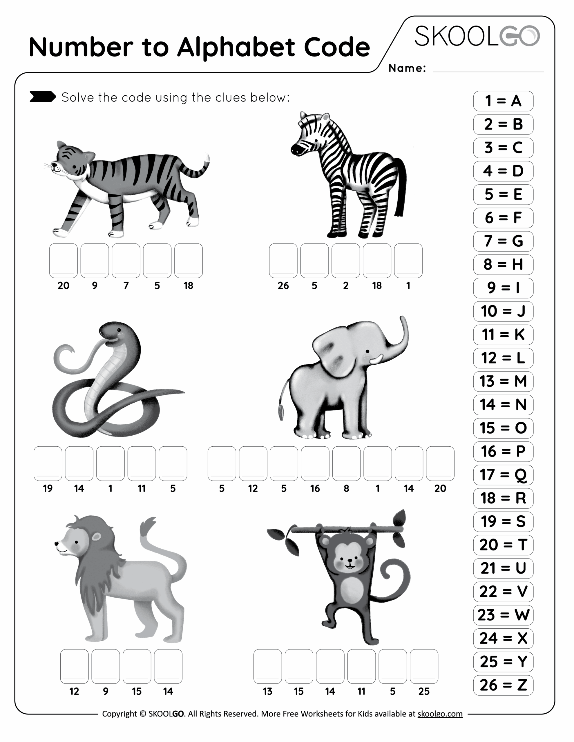Numbers To Alphabet Code Free Worksheet For Kids SKOOLGO