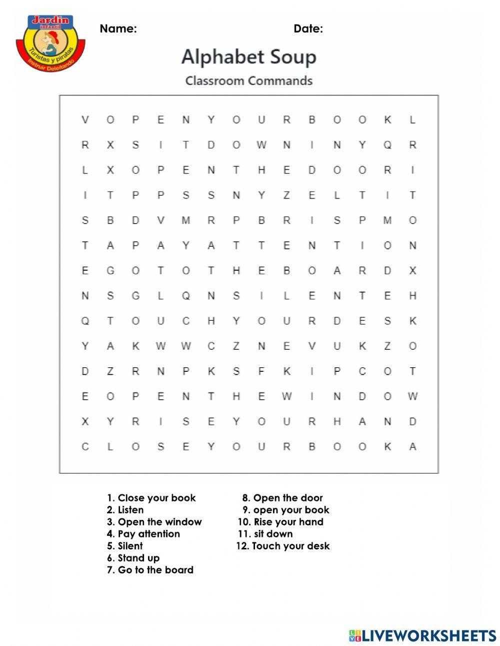 Alphabet Soup Classroom Commands Worksheet Live Worksheets Worksheets Library