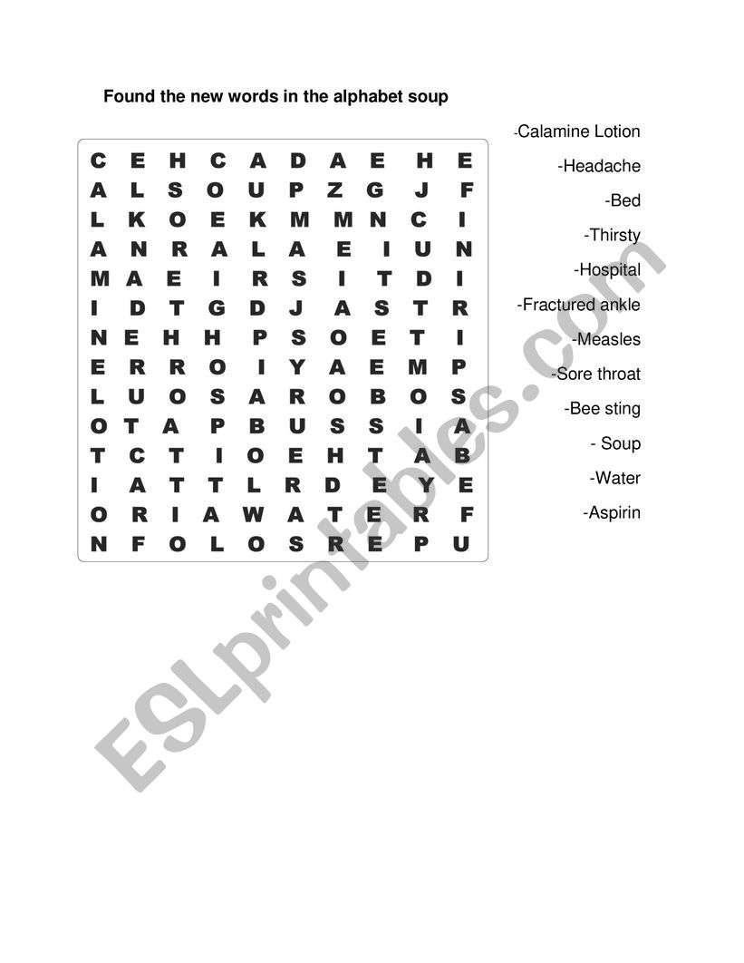 Alphabet Soup EMERGENCIES ESL Worksheet By Genny2520