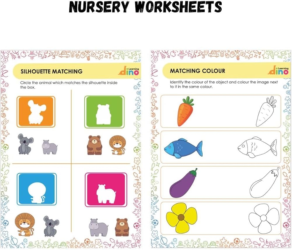 Learning Dino Nursery Activity Worksheets For Kids DIY Alphabet Puzzle Sticker Sheet English Maths Logical Reasoning Lifeskills For 3 To 5 Years Old Kids Learning Dino Amazon in Books