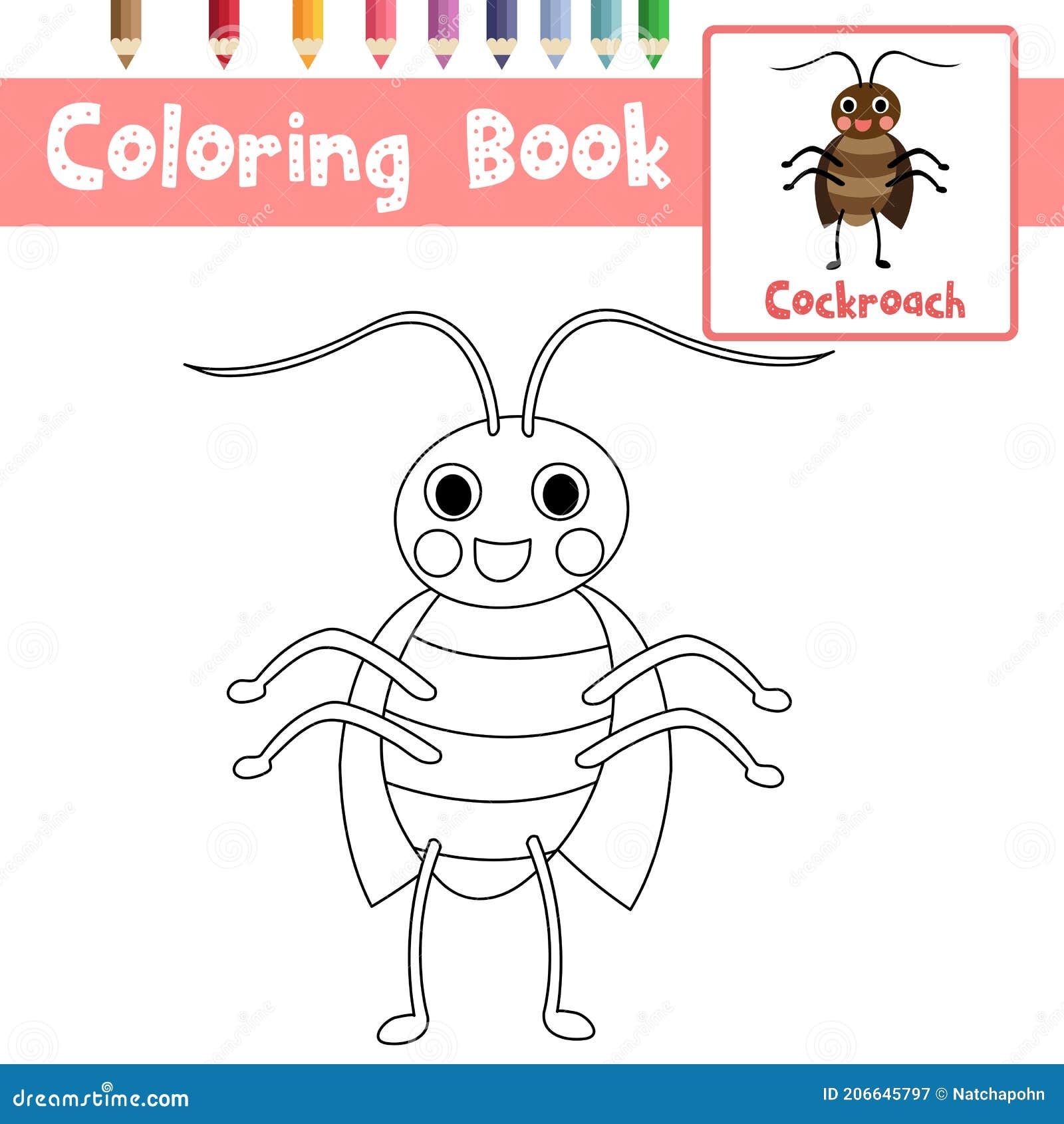 Coloring Page Cockroach Animal Cartoon Character Vector