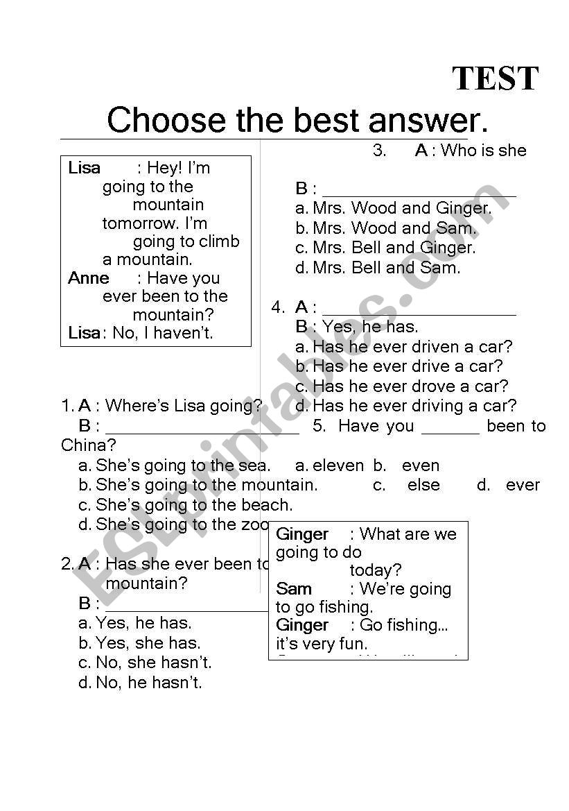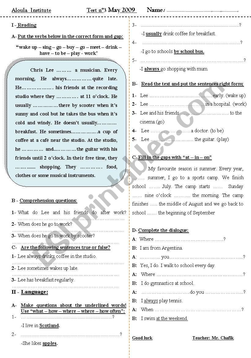 Test Reading Comprehension Grammar Dialogue Completion ESL Worksheet By Chafik Boufrioua
