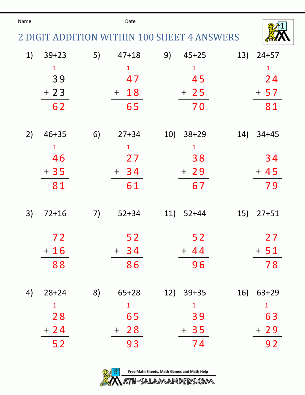 Our worksheets include a variety of activities such as adding two-digit numbers without regrouping, subtracting two-digit numbers with borrowing, and solving word problems involving double-digit numbers. These exercises are designed to challenge your child’s problem-solving skills and improve their math fluency.