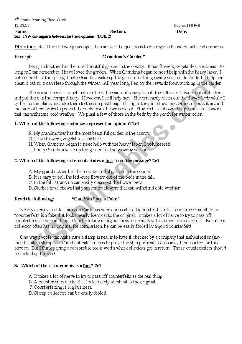 Fact And Opinion ESL Worksheet By Doublel2424