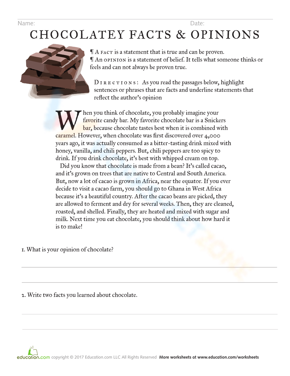 Fact And Opinion Reading Comprehension Worksheet