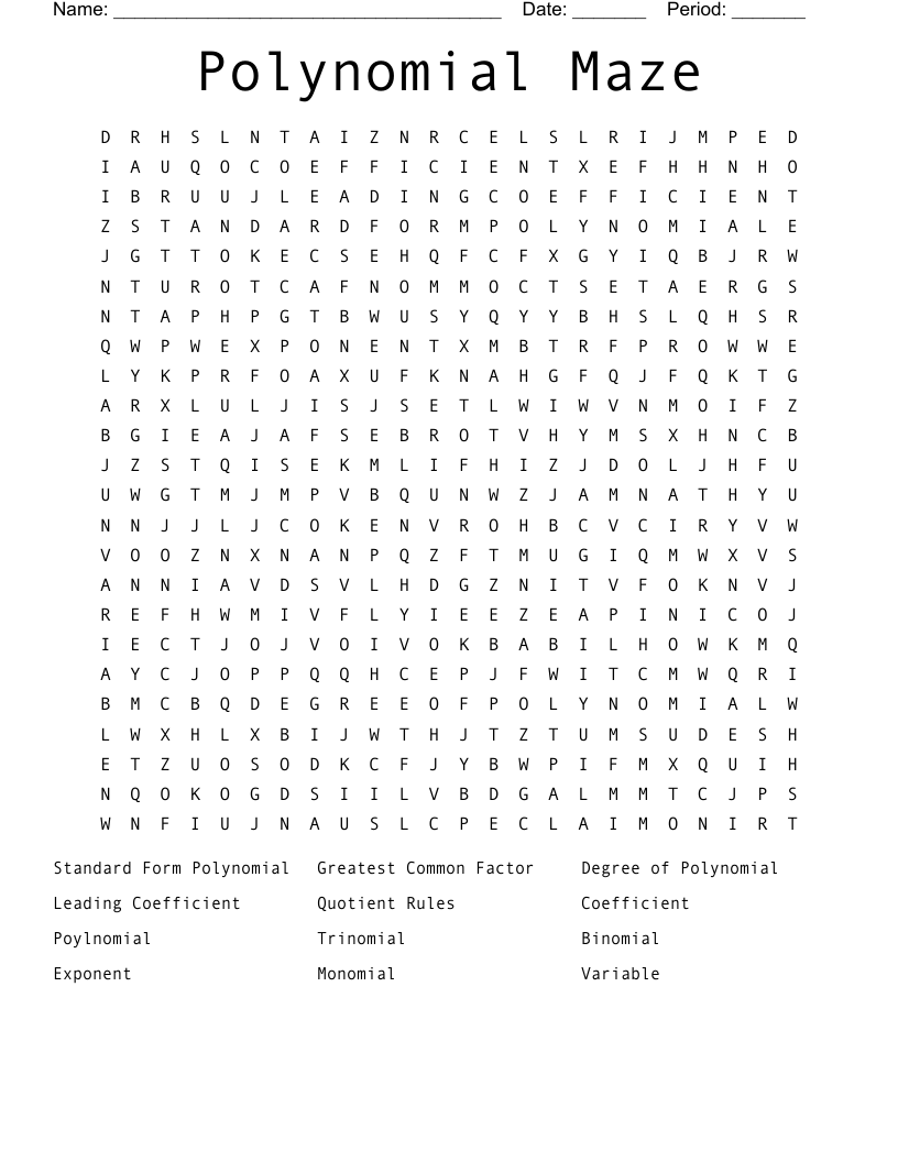 Polynomial Maze Word Search WordMint