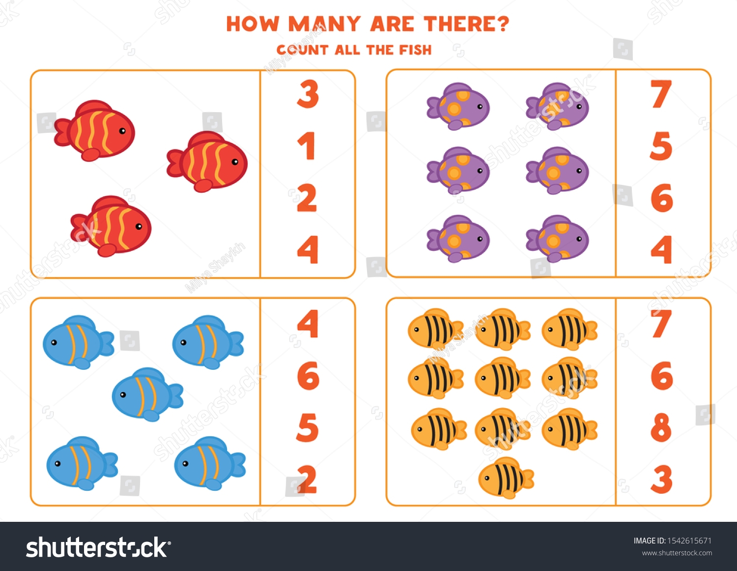 Vektor Stok Educational Worksheet Preschool Kids Count Fish Tanpa Royalti 1542615671 Shutterstock