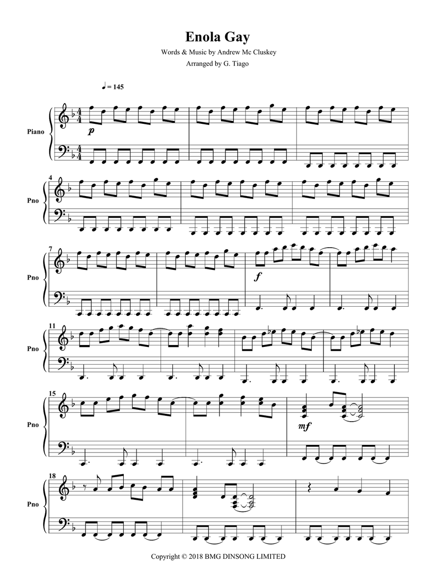 Enola Gay Piano Sheet Music