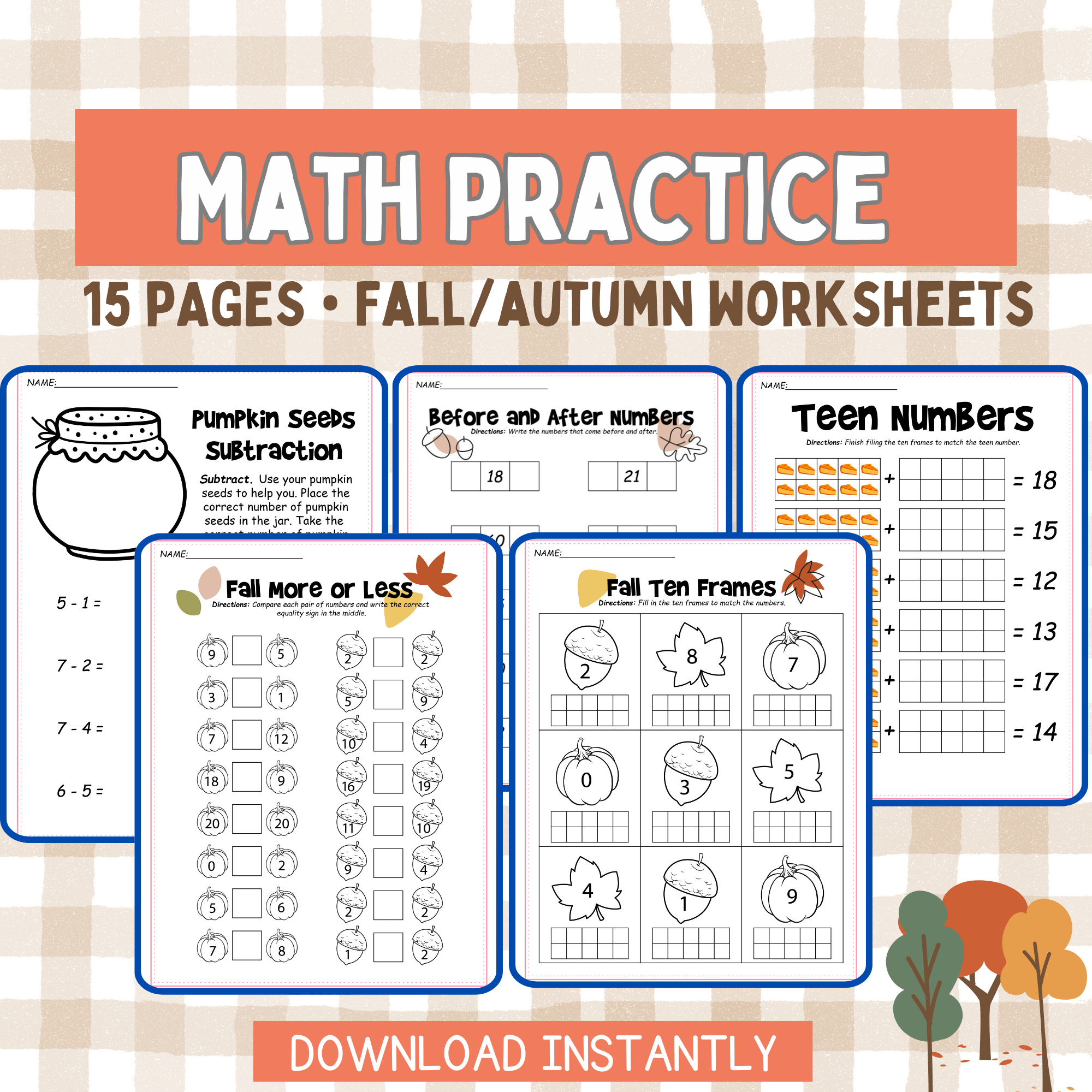 These worksheets are not only educational but also a great way to celebrate the season. Your kids will love the cute images of pumpkins, leaves, and apples as they work through the math problems. It’s a win-win for both learning and fun!