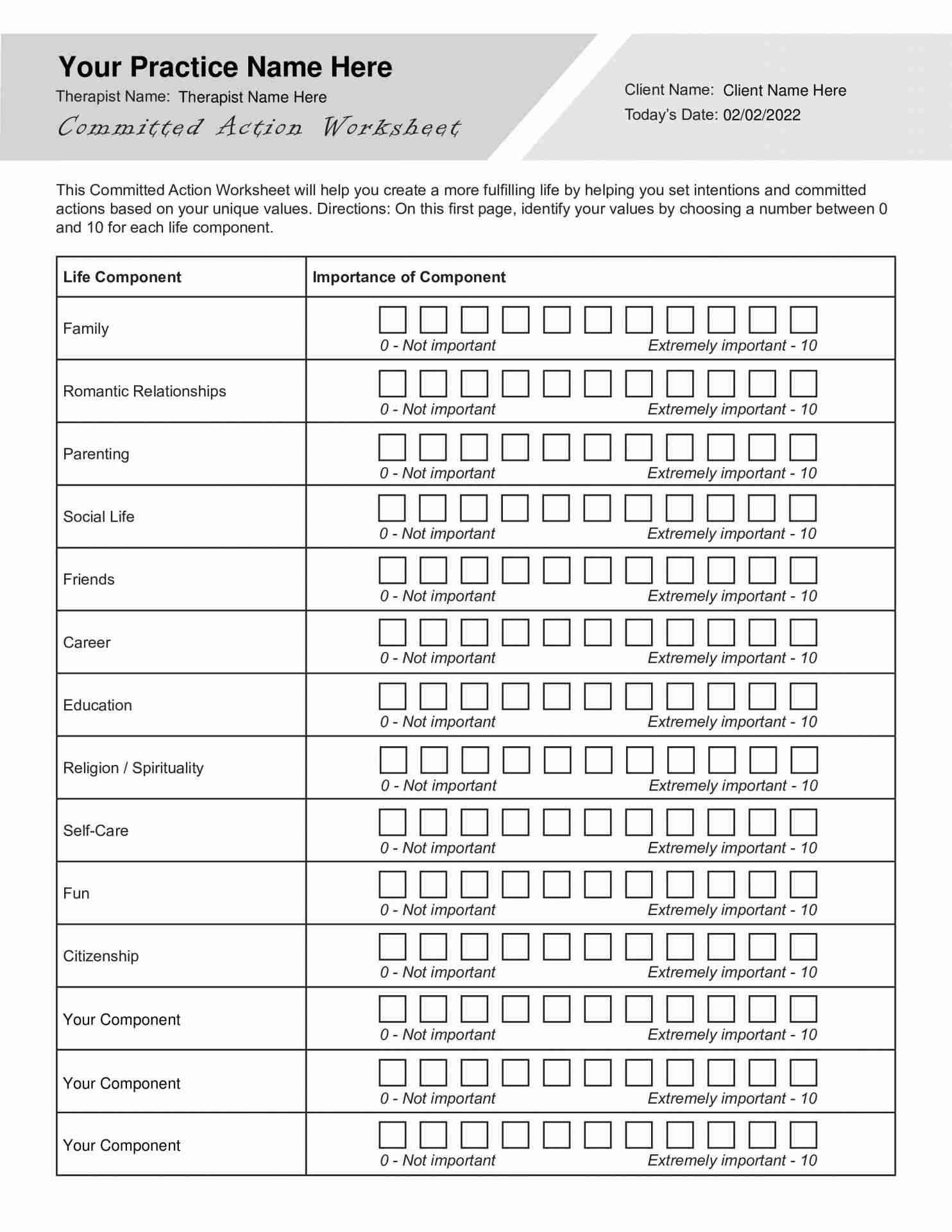 ACT Values Worksheet U0026 Example Free PDF Download