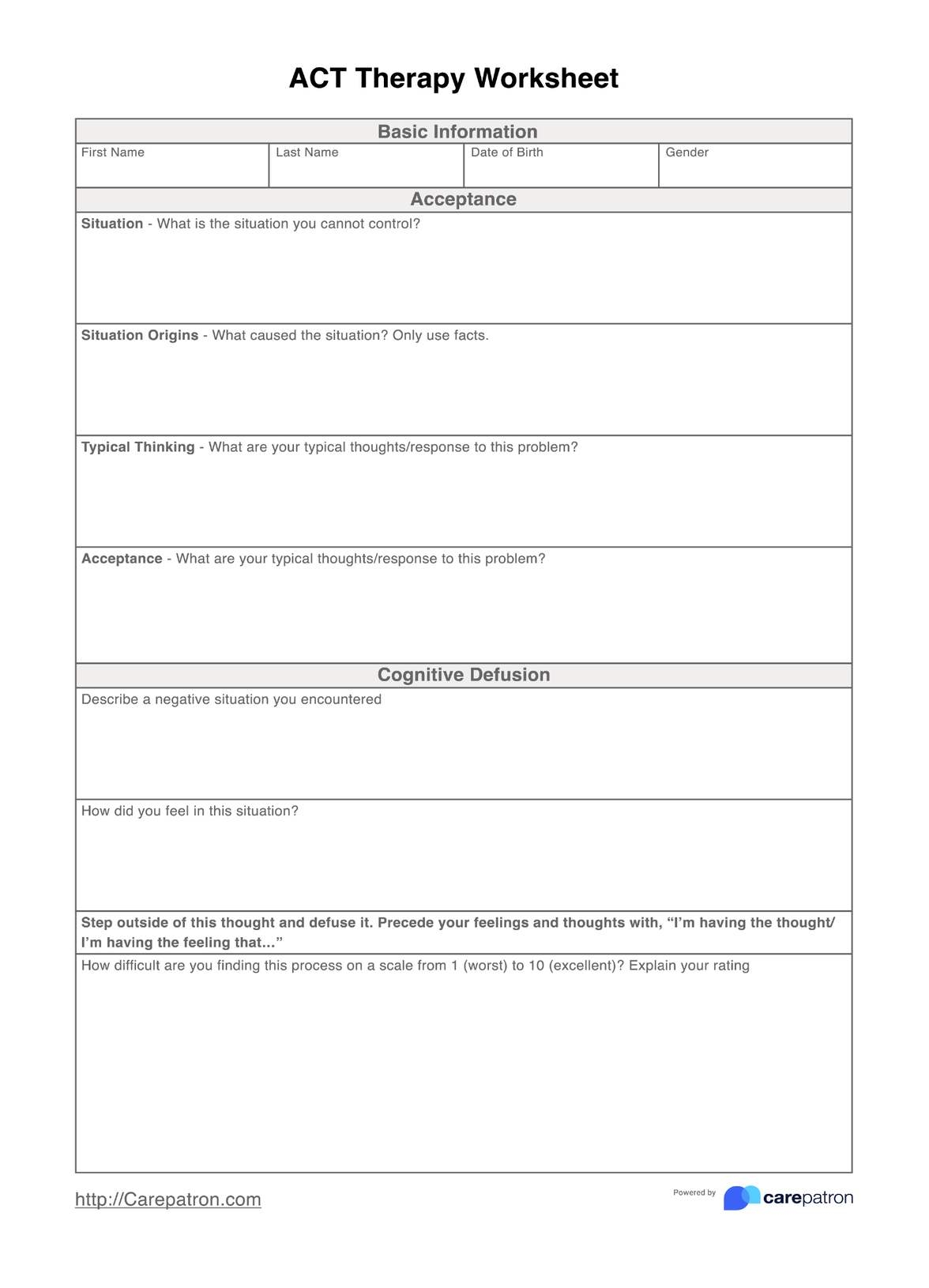 ACT Therapy Worksheet U0026 Example Free PDF Download