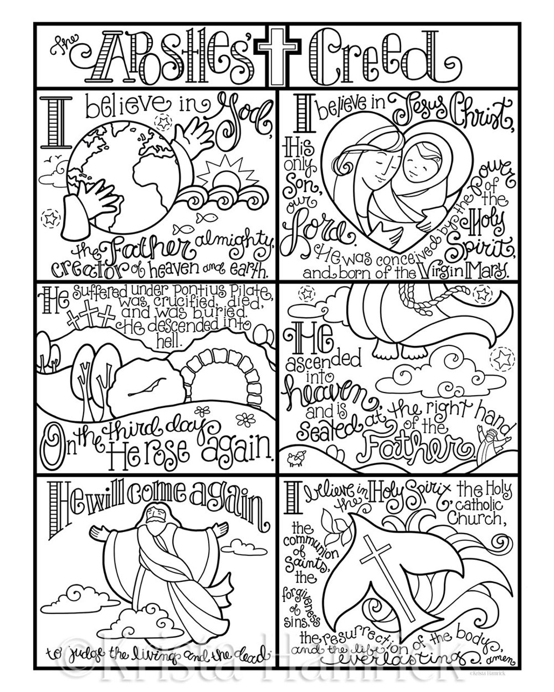 Apostles Creed Memory Coloring Collection Includes 9 Coloring Pages For Memorization Or Lessons Etsy