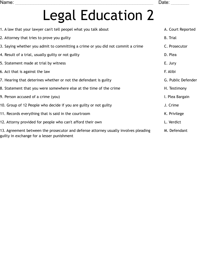Criminal Justice Matching Worksheet WordMint