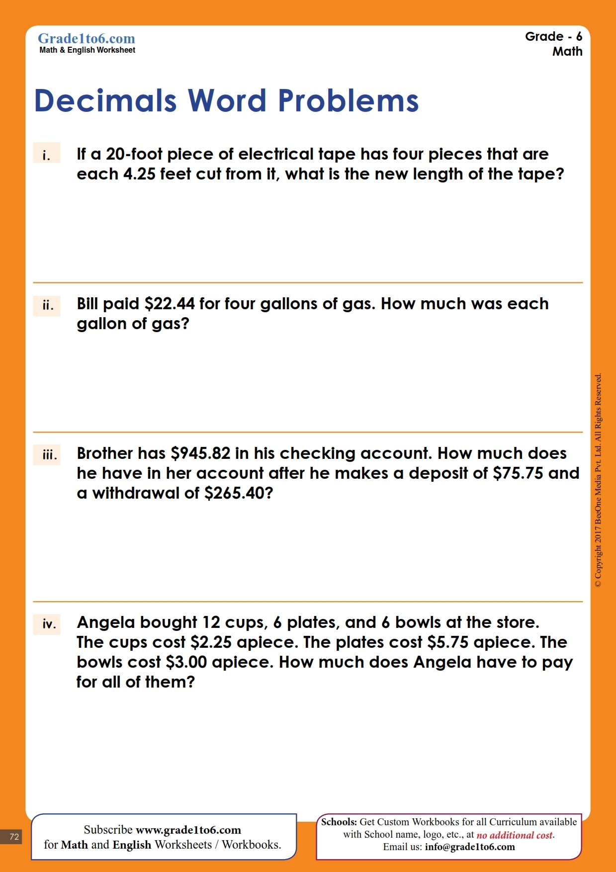 Decimals Word Problem Worksheets K5 Learning Worksheets Library