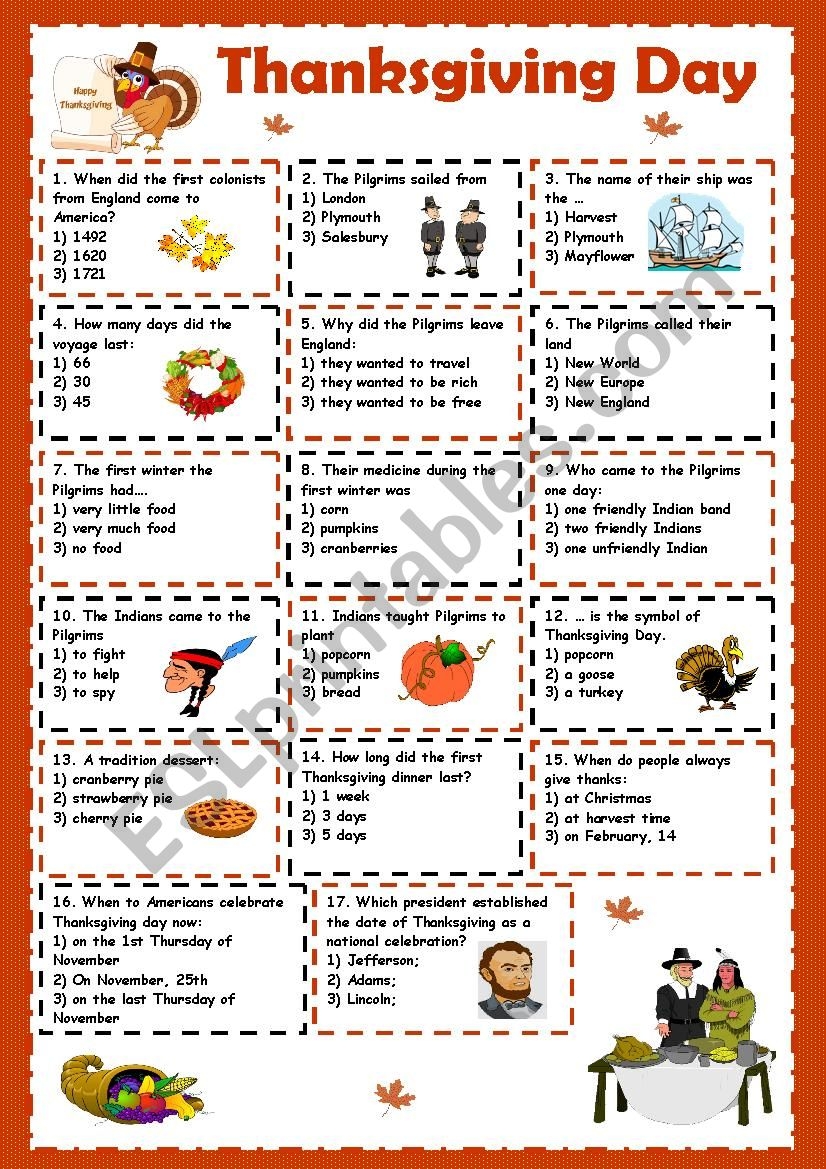 Free Printable Esl Thanksgiving Worksheets
