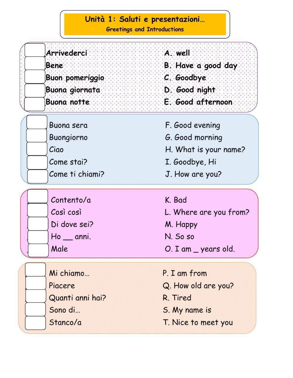Free Printable Italian Greetings Worksheets
