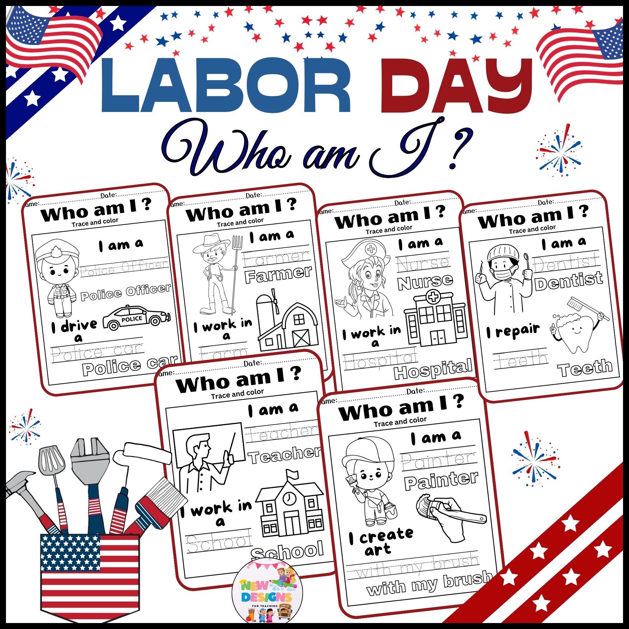 Labor Day Tracing And Coloring Activity Who Am I Printable Worksheet For Kids Made By Teachers