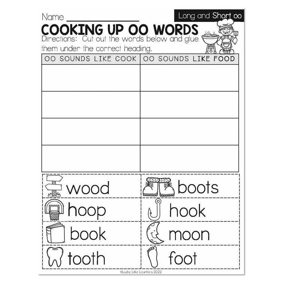 U And OO Worksheets Cut And Paste Sorts Cloze Writing And More