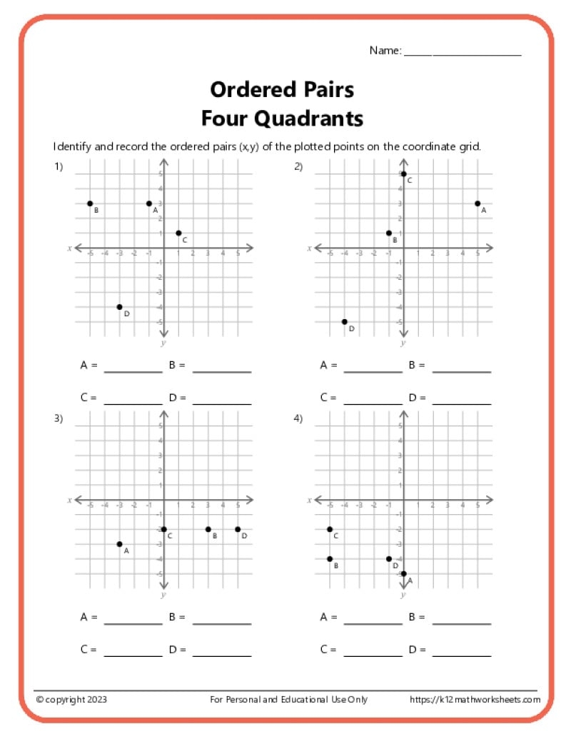 With these worksheets, kids can learn about ordered pairs, coordinate grids, and graphing in a hands-on manner. They are perfect for children of all ages and can be used at home or in the classroom.
