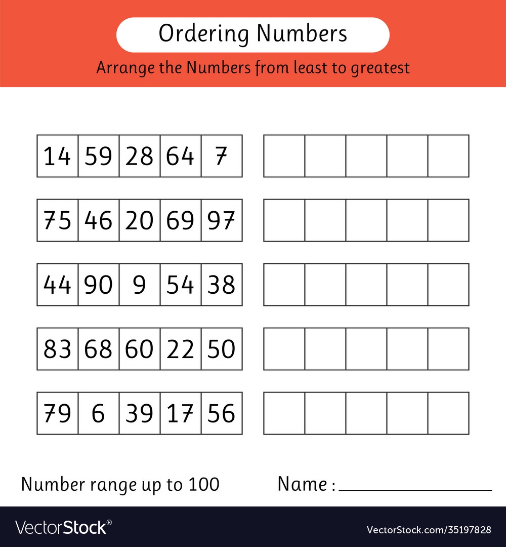 Ordering Numbers Worksheet Arrange Royalty Free Vector Image