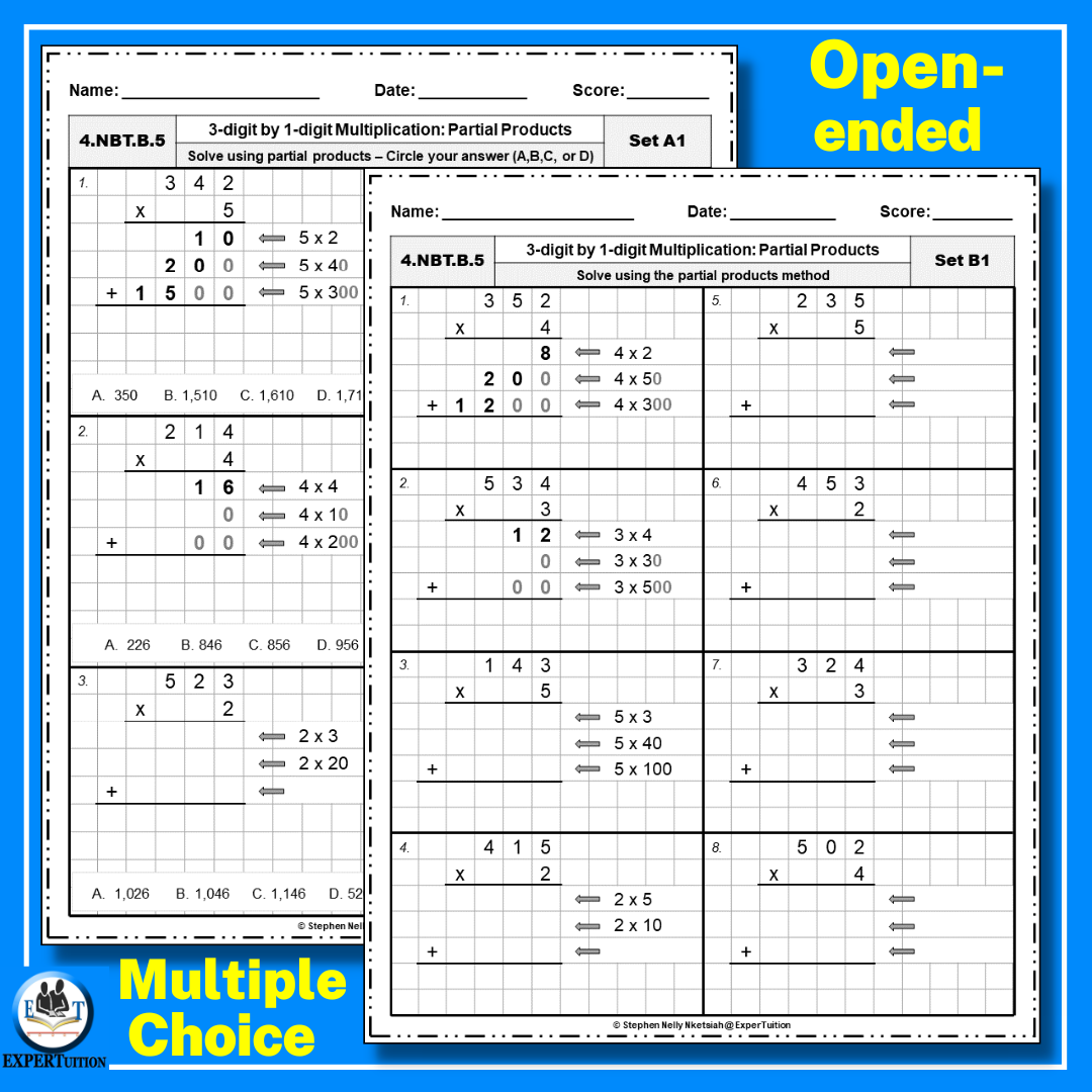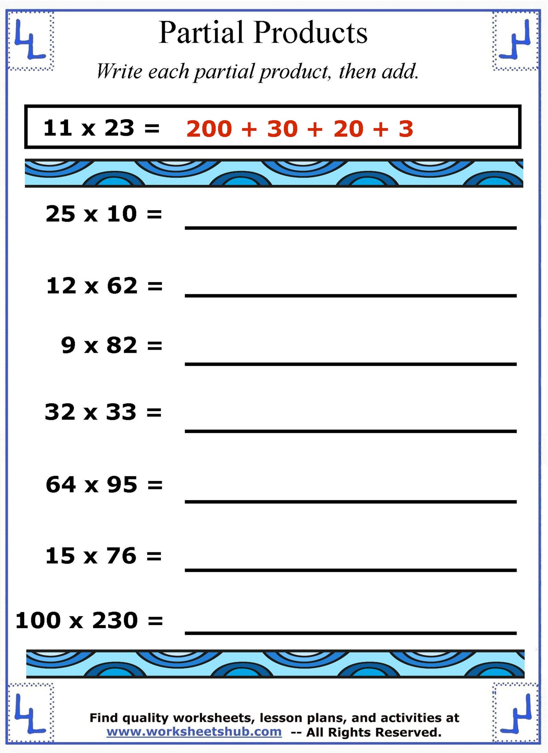 Free Printable Partial Products Worksheets