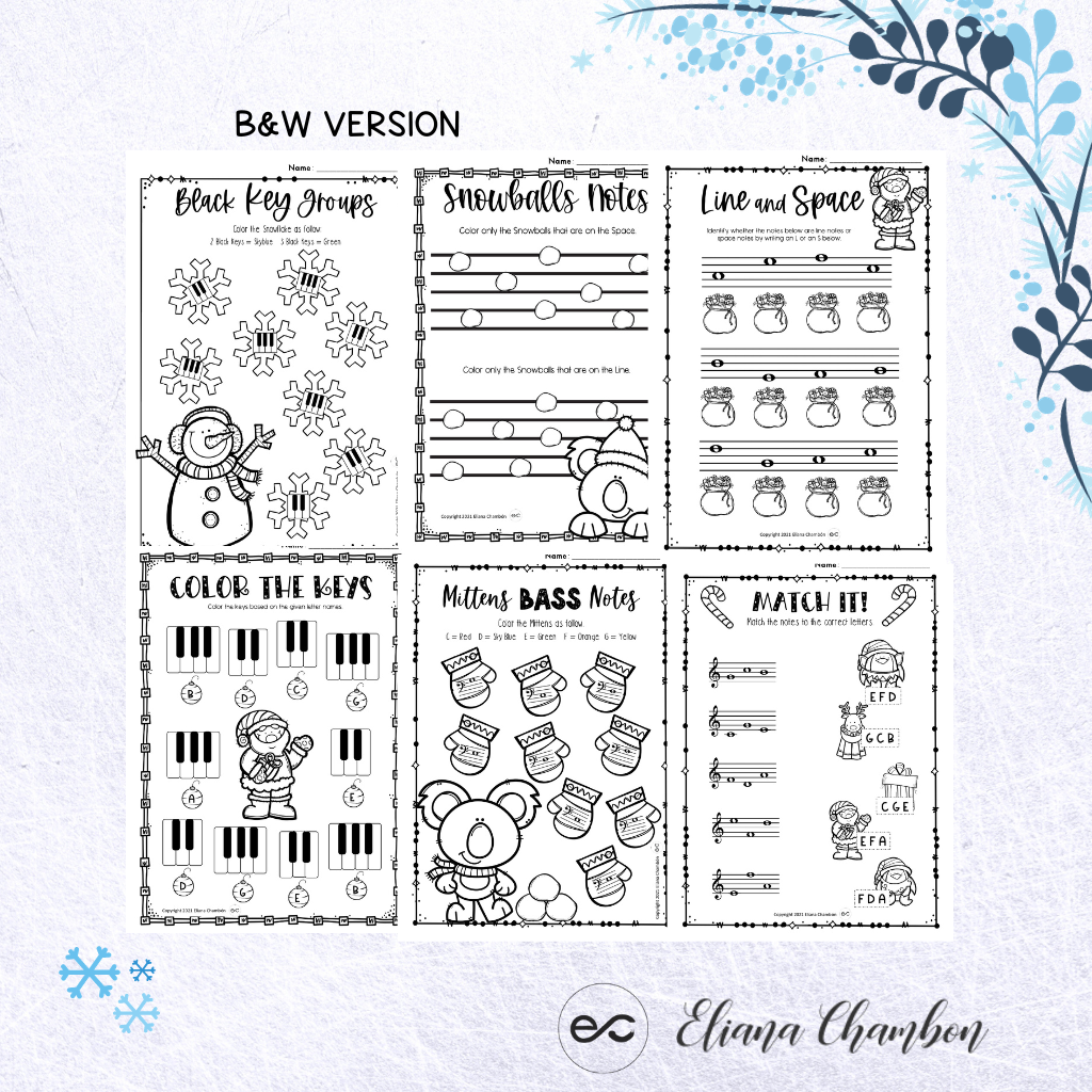 Printable Christmas Music Theory Worksheet Bundle Piano Music