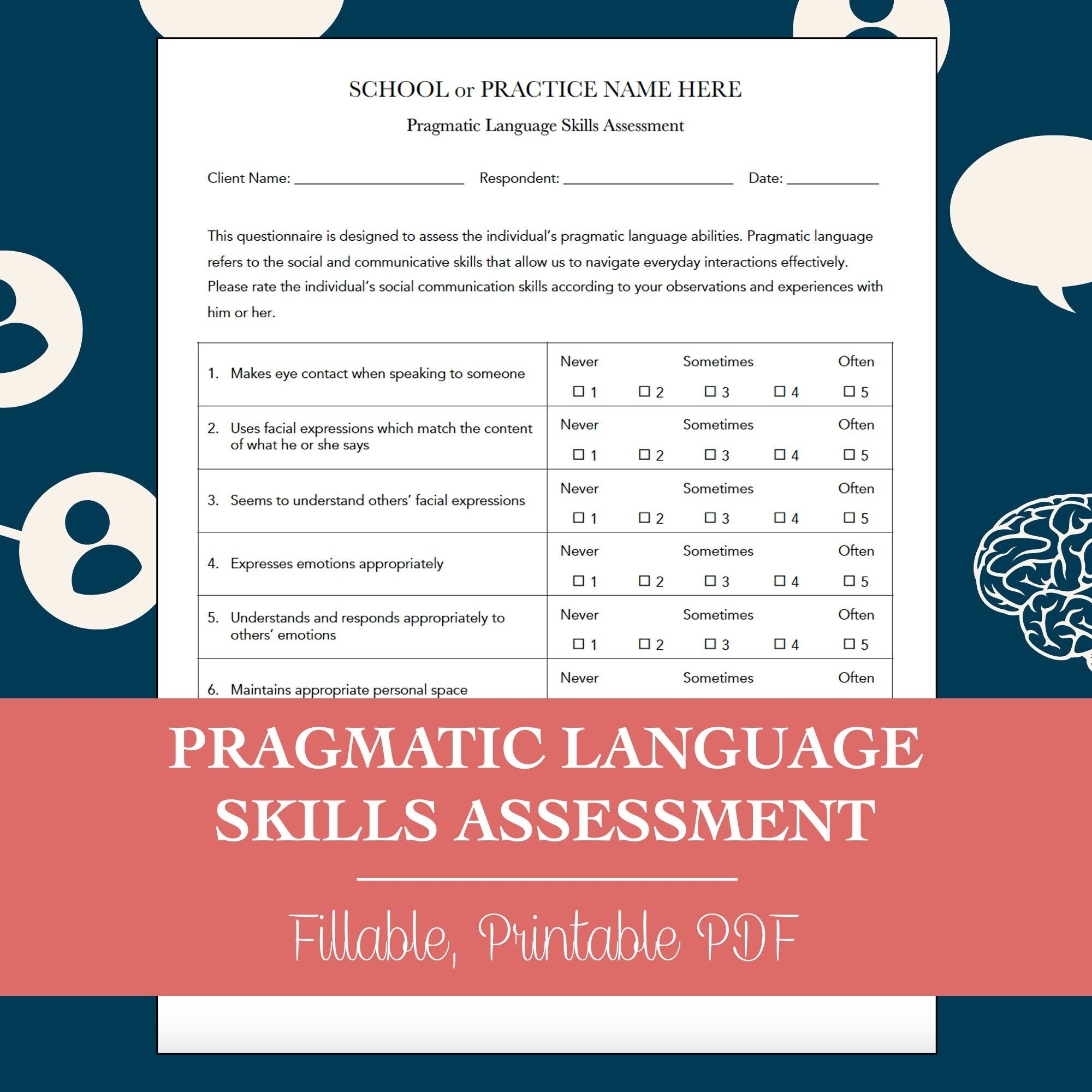 Pragmatic Language Skills Assessment Worksheet For Speech Therapy editable Fillable Printable PDF Etsy