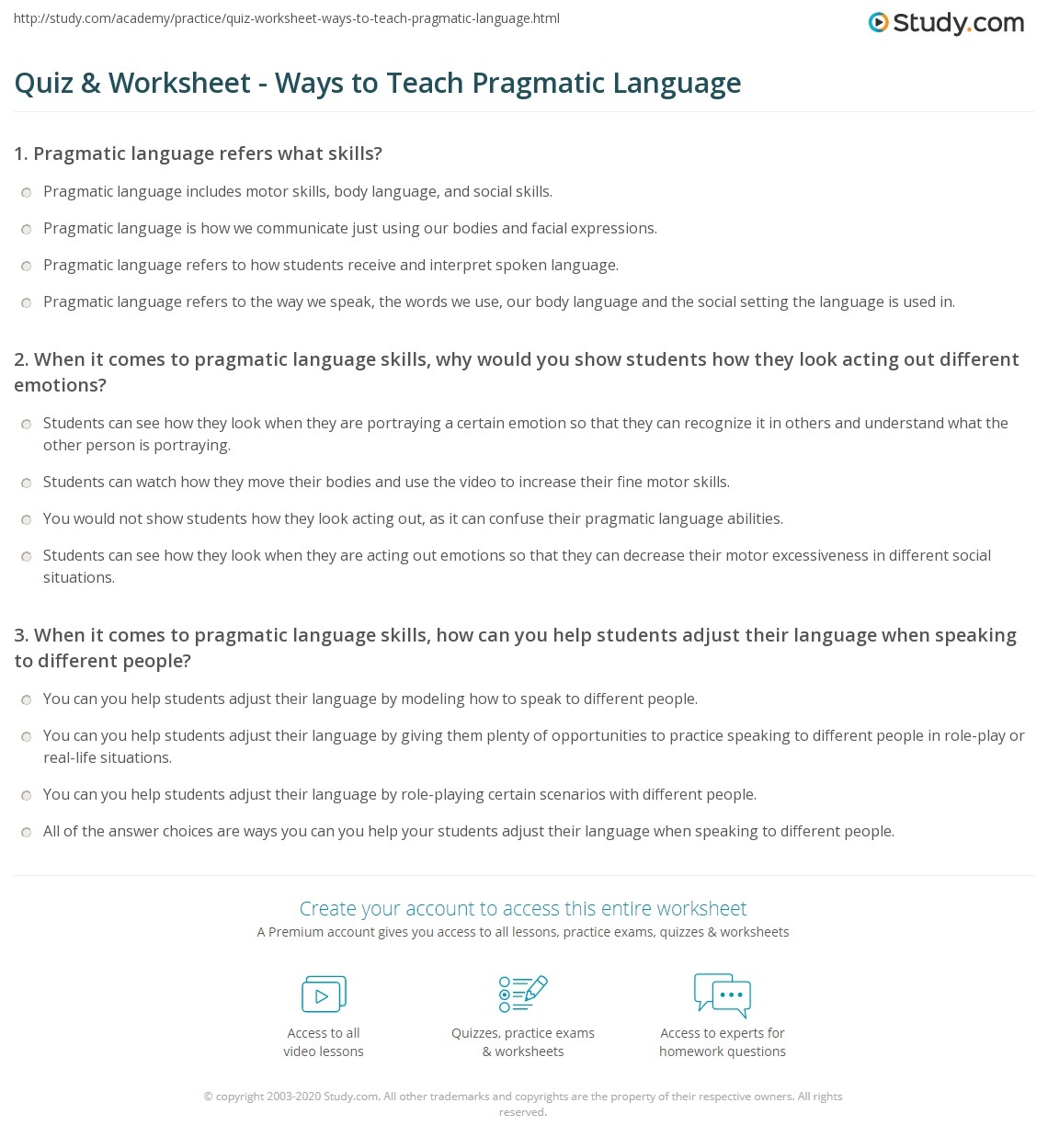 Free Printable Pragmatic Worksheets
