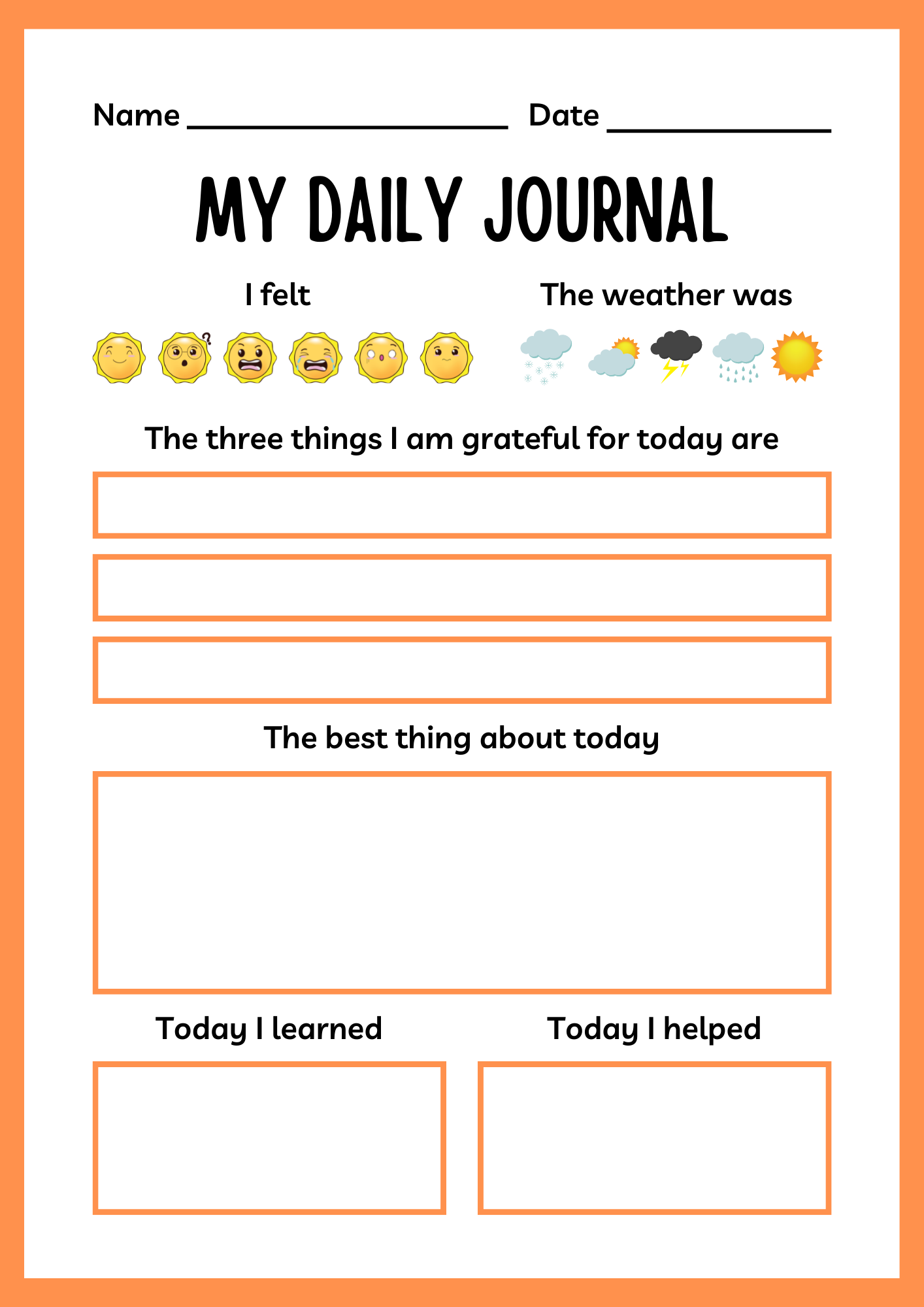 Free Printable Daily Writing Journal For Kids Sunny Day Family