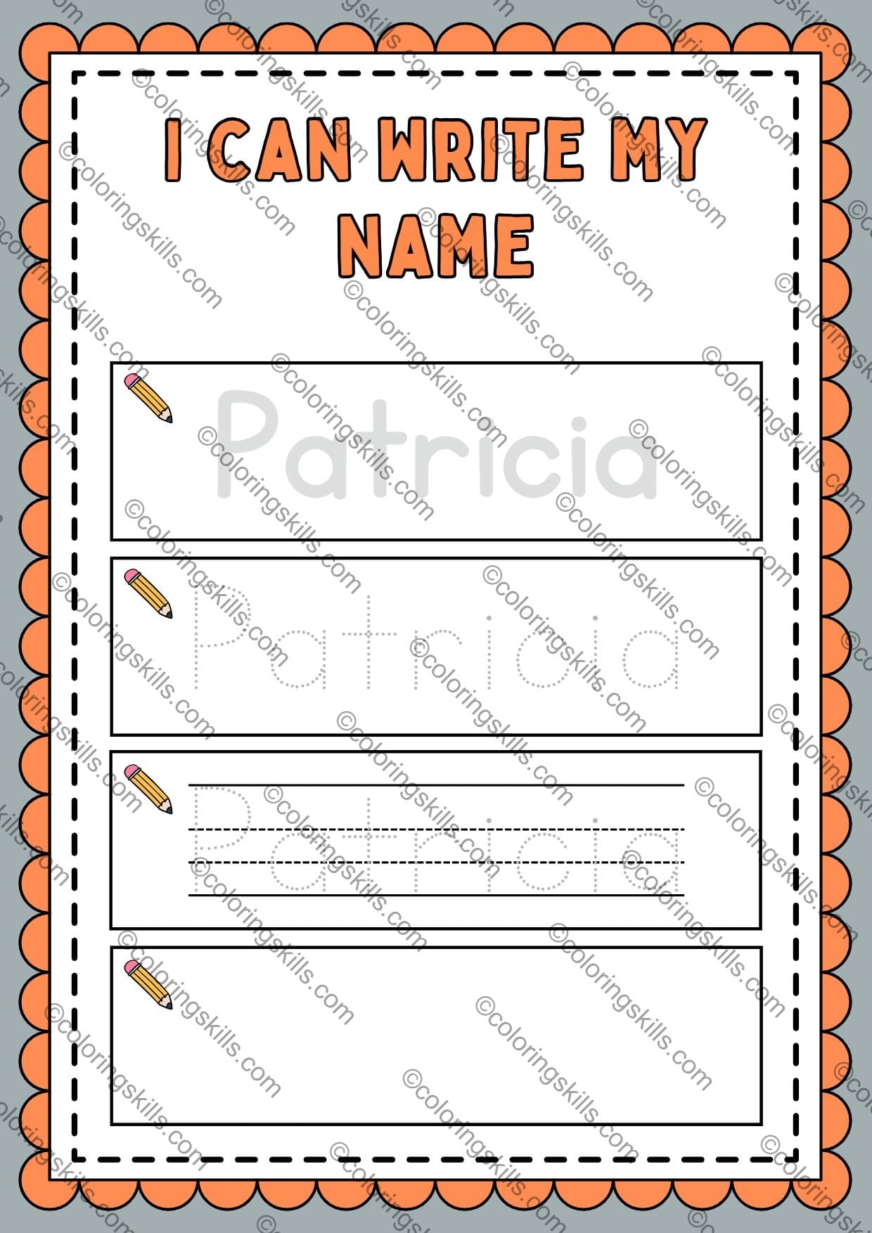 Each worksheet features your child’s name in a large, clear font for easy tracing. They can practice writing their name over and over until they feel confident and ready to move on to more advanced writing tasks.