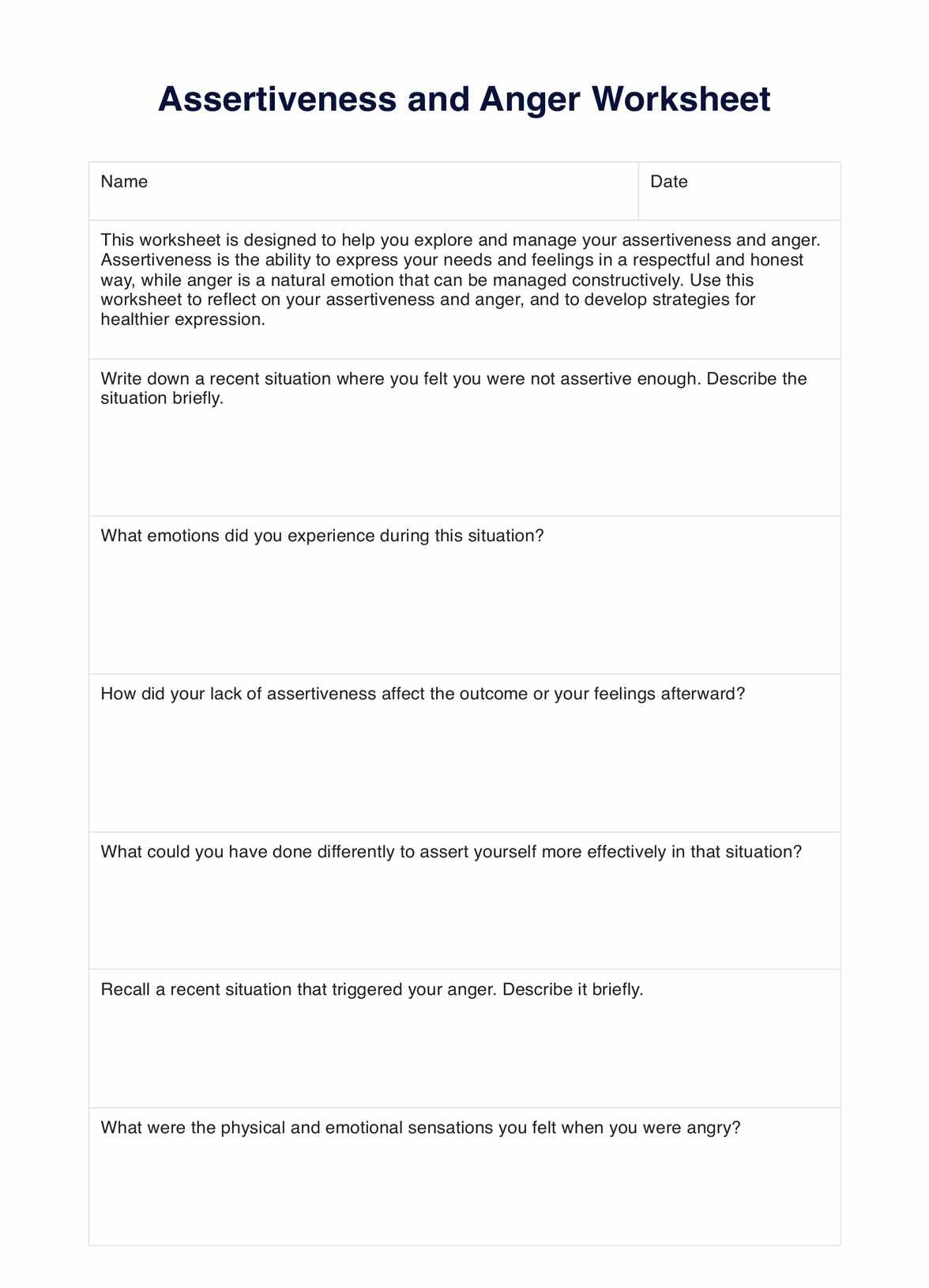 Assertiveness And Anger Worksheet U0026 Example Free PDF Download