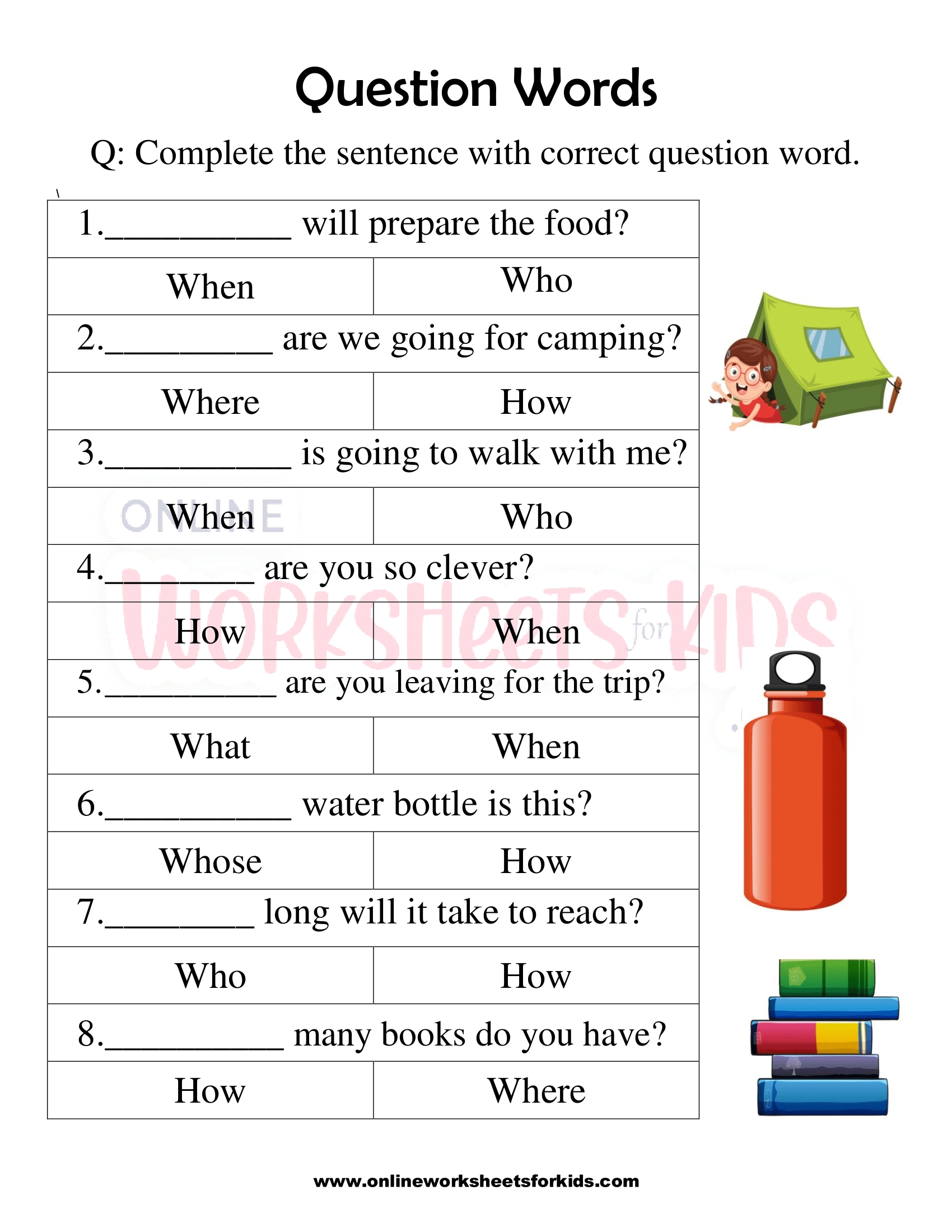 Designed for elementary school students, these worksheets cover a range of question words such as who, what, when, where, why, and how. With colorful illustrations and engaging activities, learning about question words has never been more enjoyable!