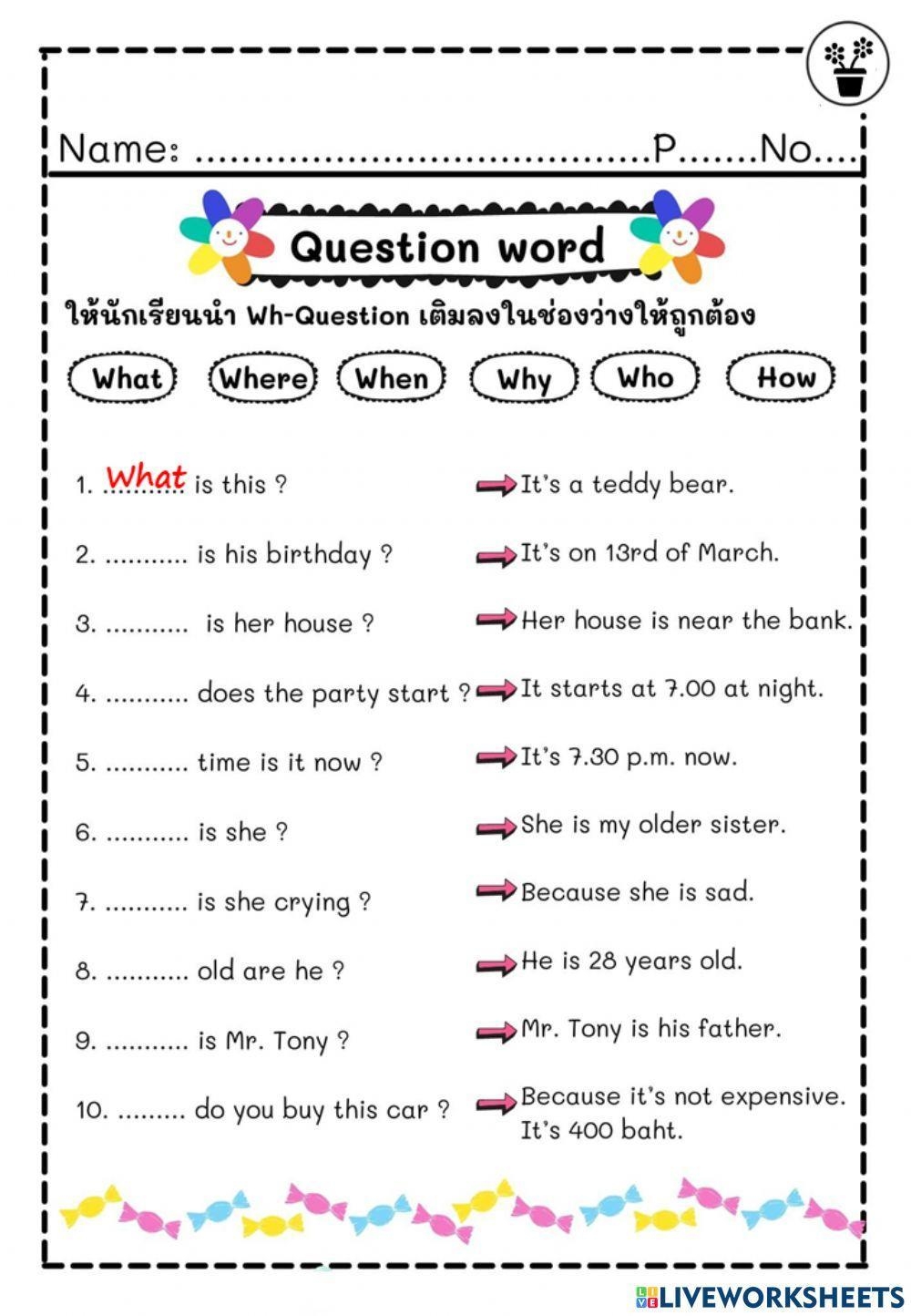 Each worksheet focuses on a different question word, allowing students to practice using them in various contexts. From fill-in-the-blank exercises to matching games, these worksheets offer a diverse range of activities to keep students motivated and engaged.