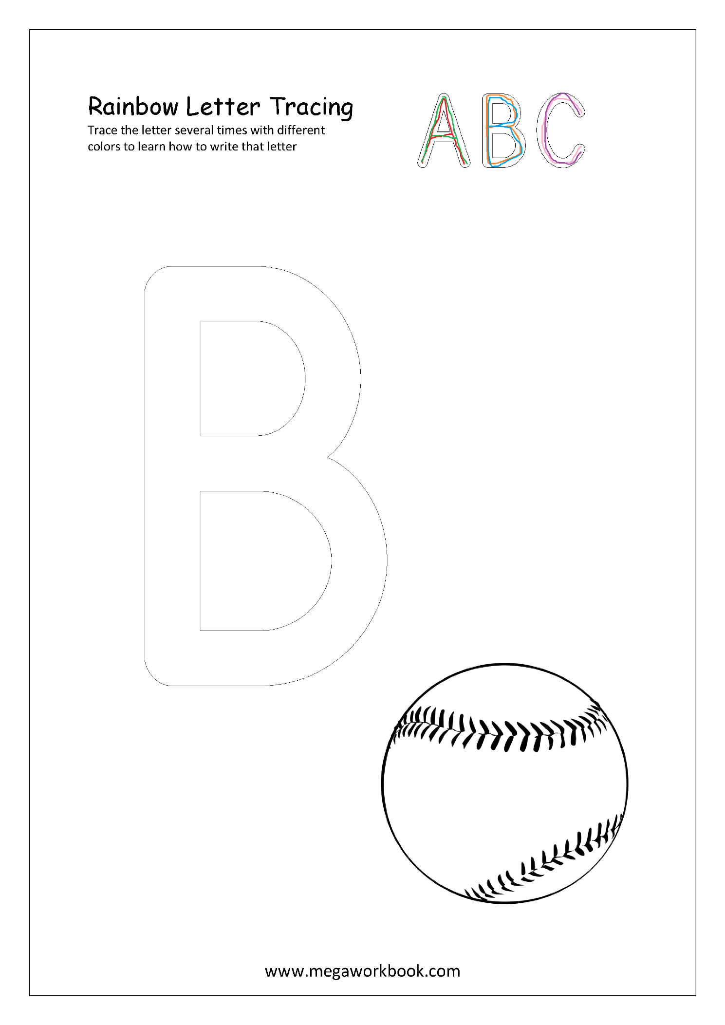 Free Printable Rainbow Writing Worksheets Rainbow Letter Tracing Objects Starting With Any Letter MegaWorkbook