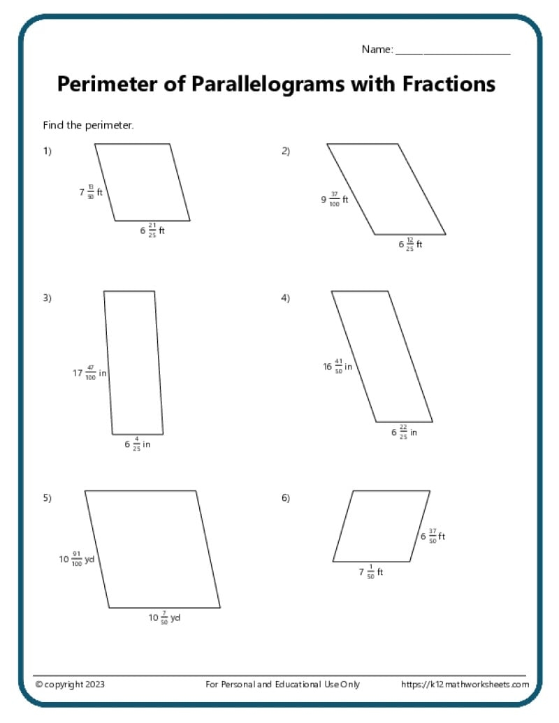 Area And Perimeter Of Parallelograms K12 Math Worksheets