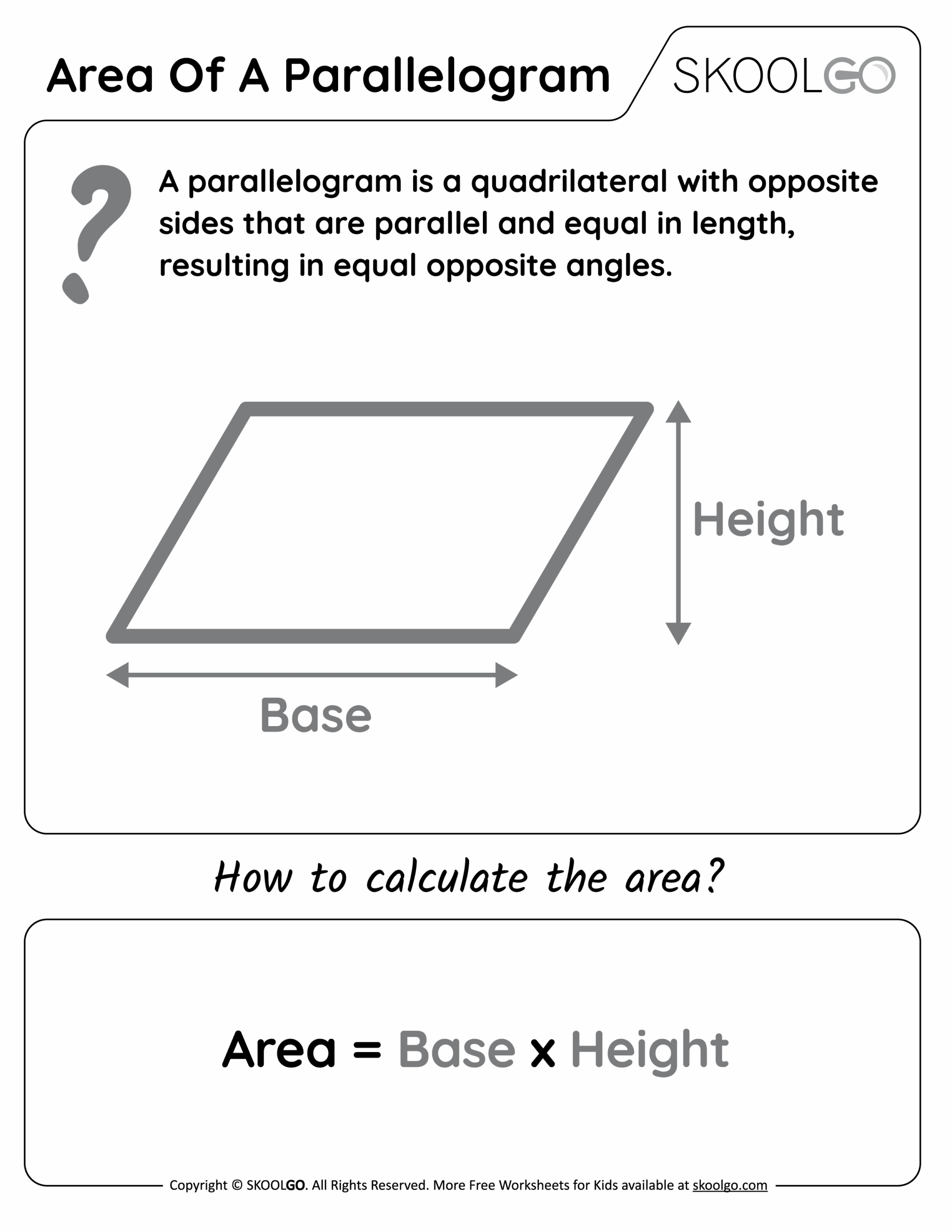 Area Of A Parallelogram Free Worksheet For Kids SKOOLGO