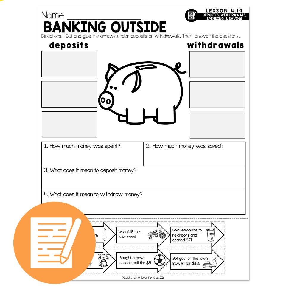 Lucky To Learn Math Deposits Withdrawals Saving Spending Lesson 4 19 Independent Practice Banking Outside Lucky Little Learners