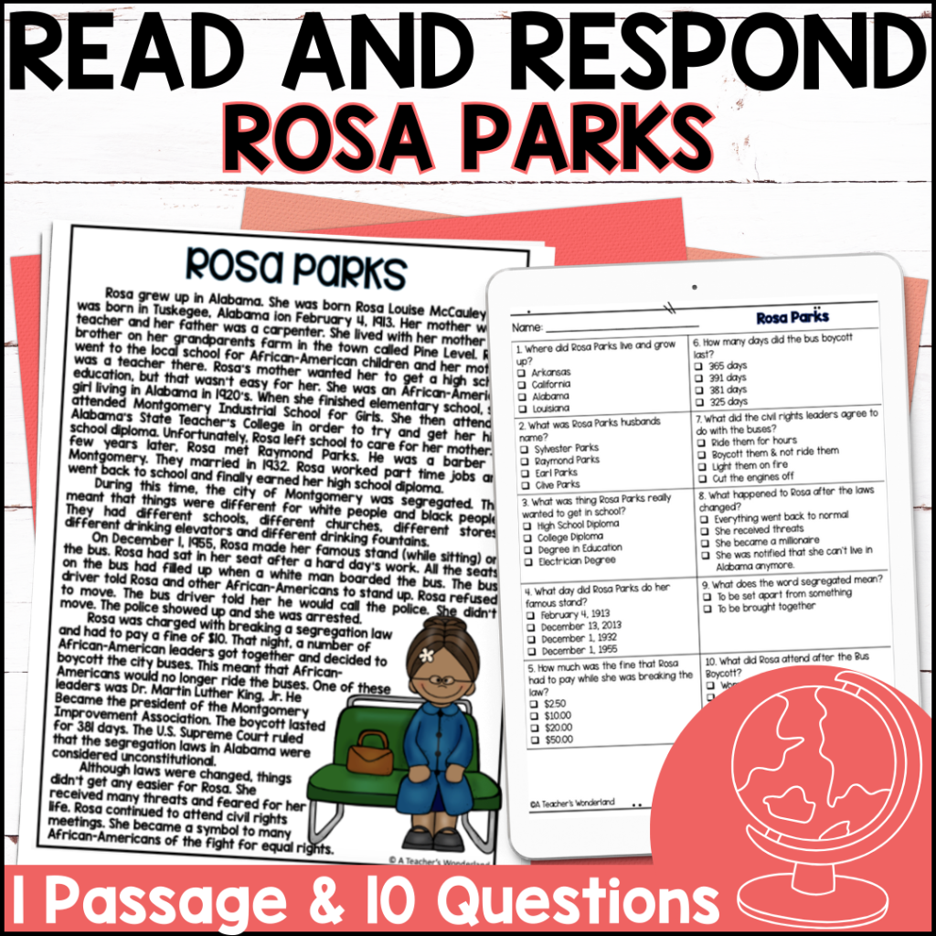 Rosa Parks Reading Comprehension Passages And Activities Worksheet No Prep Made By Teachers