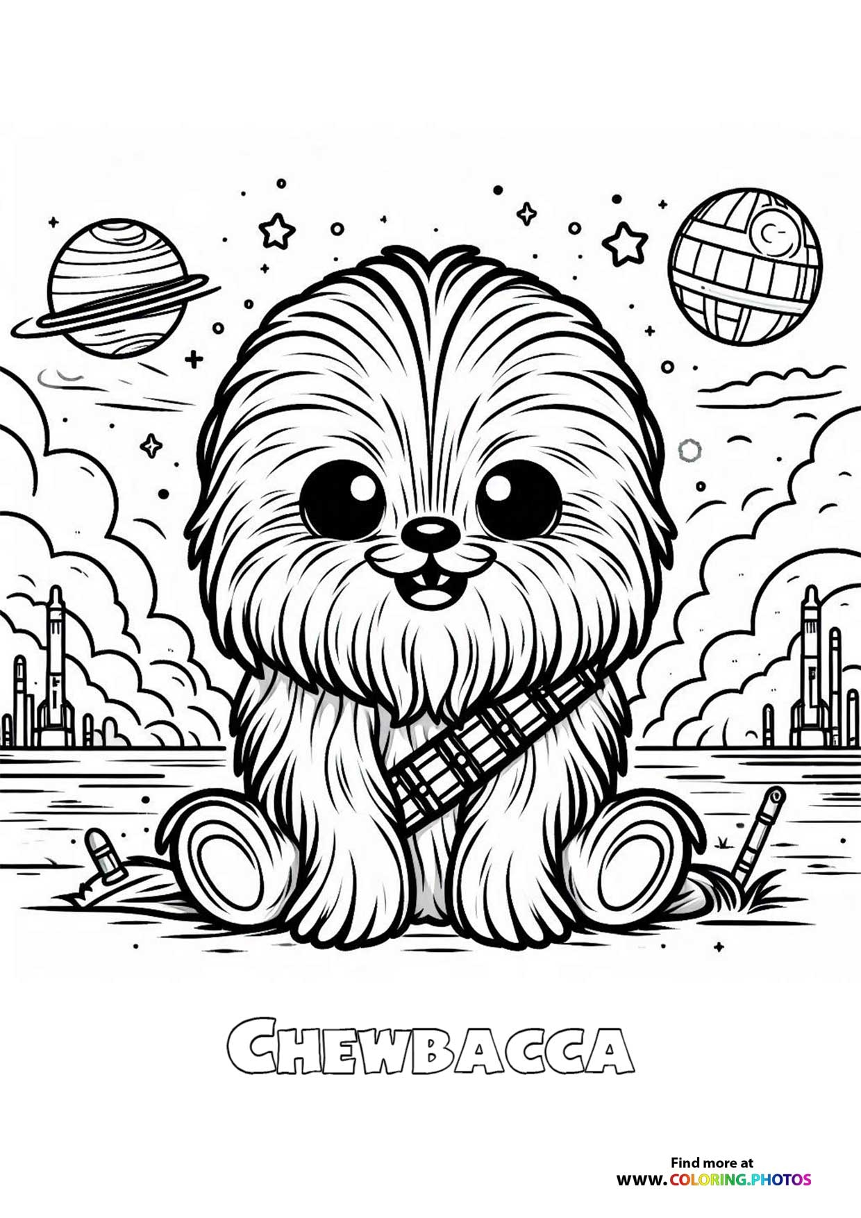 Cute Chewbacca From Star Wars Coloring Pages For Kids