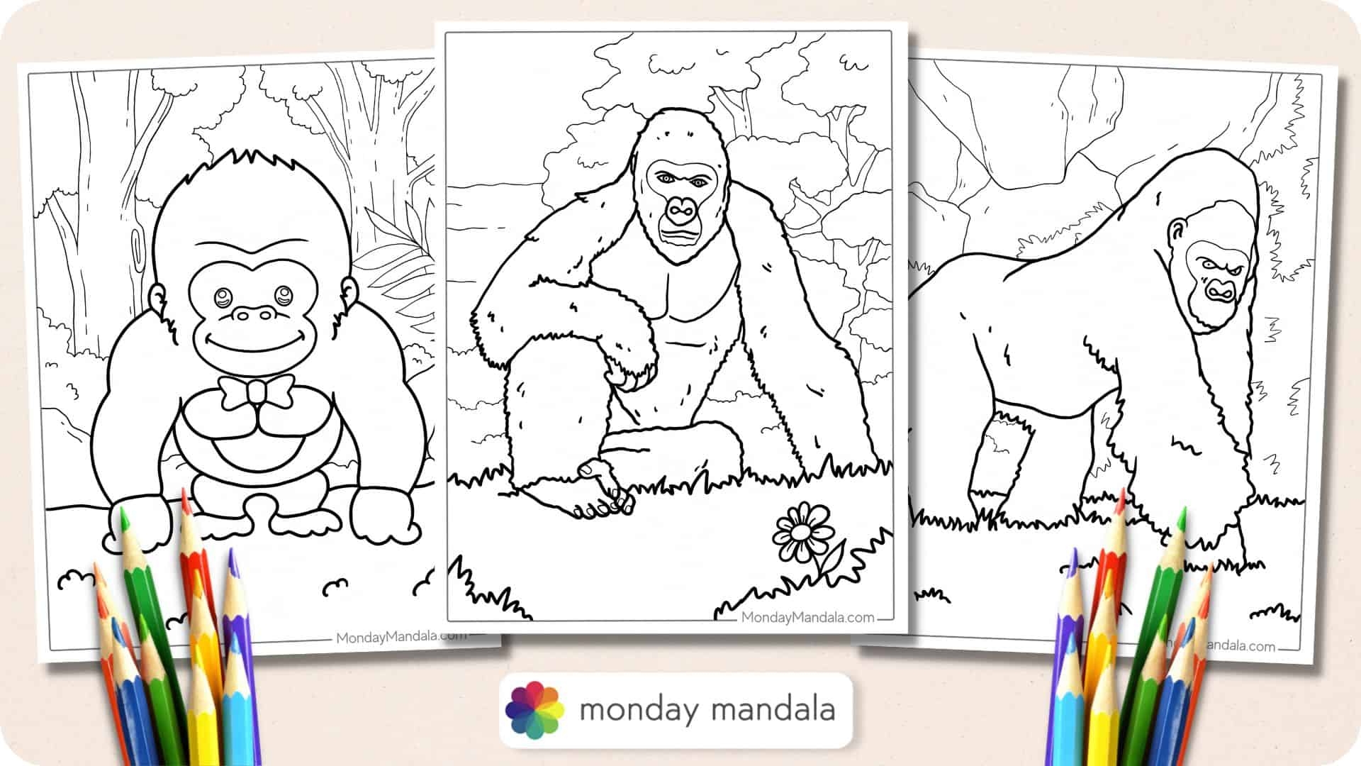 24 Gorilla Coloring Pages Free PDF Printables