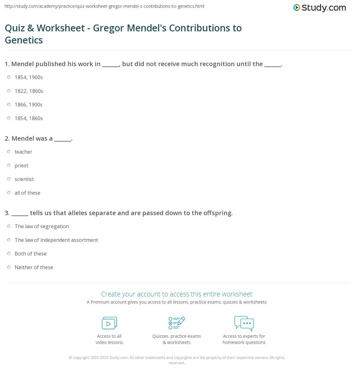 Quiz U0026 Worksheet Gregor Mendel s Contributions To Genetics Study