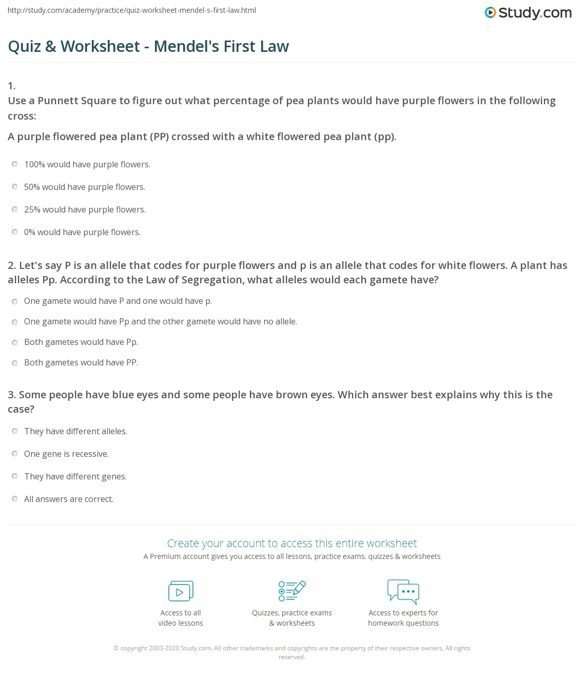 Quiz U0026 Worksheet Mendel s First Law Study
