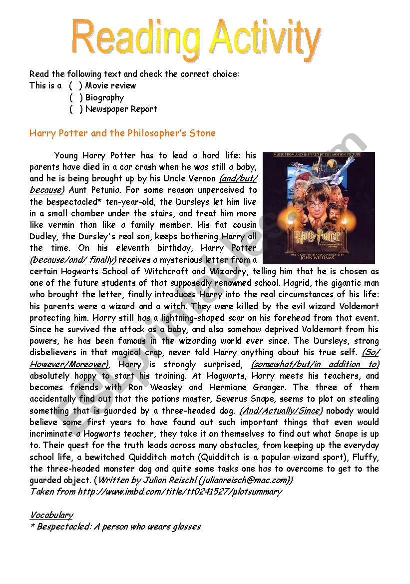 Harry Potter Reading Activity ESL Worksheet By Clossh
