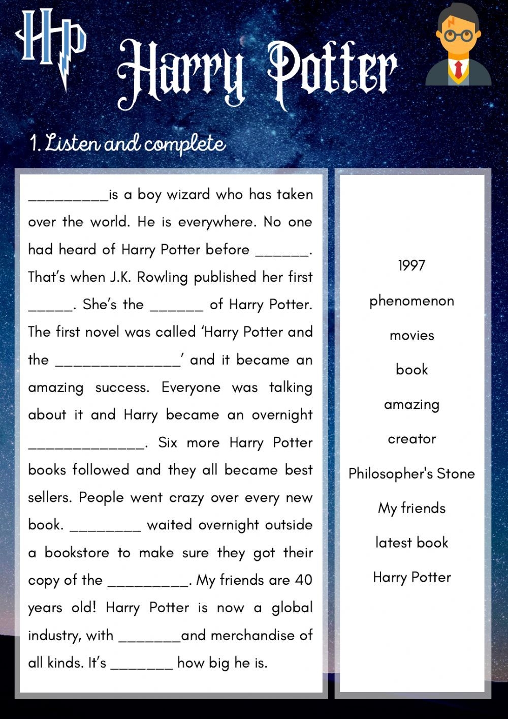Listening Harry Potter Worksheet