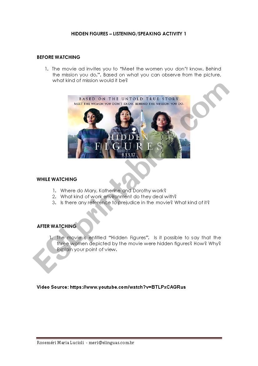 Hidden Figures ListeningSpeaking Activity 1 ESL Worksheet By Meri2015