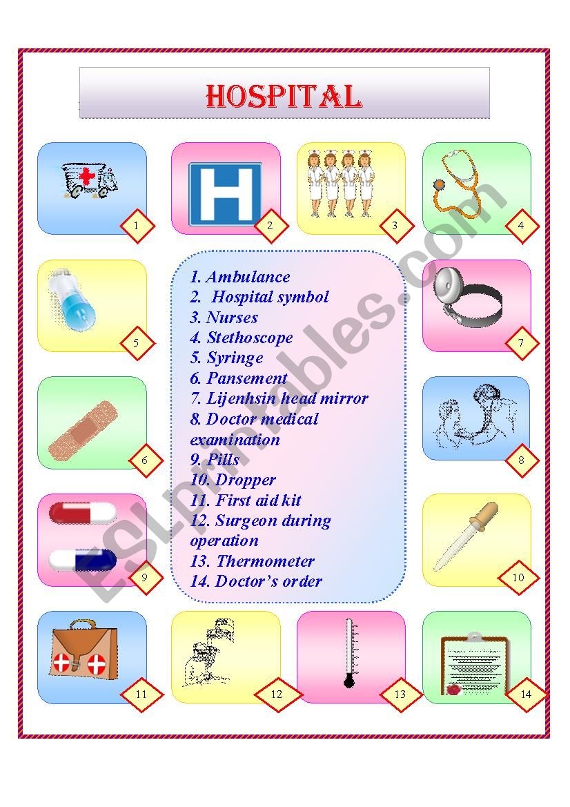 HOSPITAL ESL Worksheet By Nadiacancer