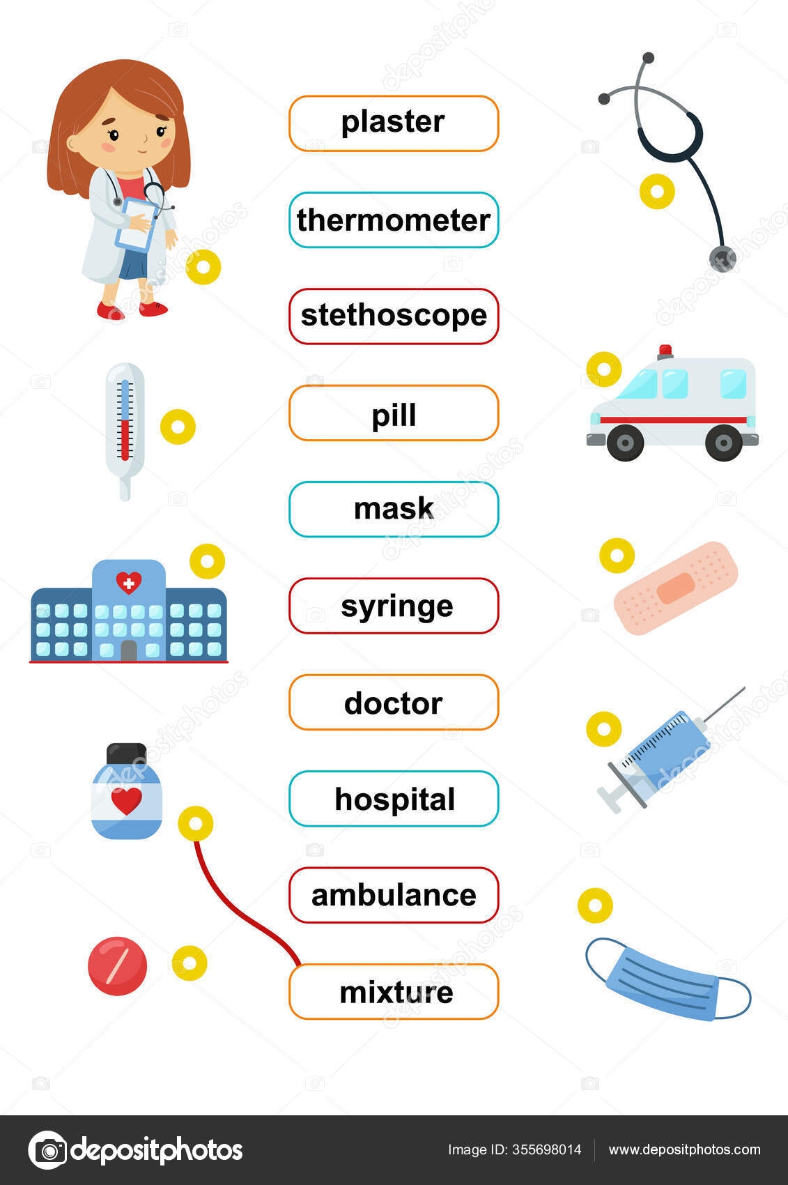 Word Match Educational Game Learn English Vocabulary Medicine Healthcare Cute Stock Vector By kristina0702 355698014